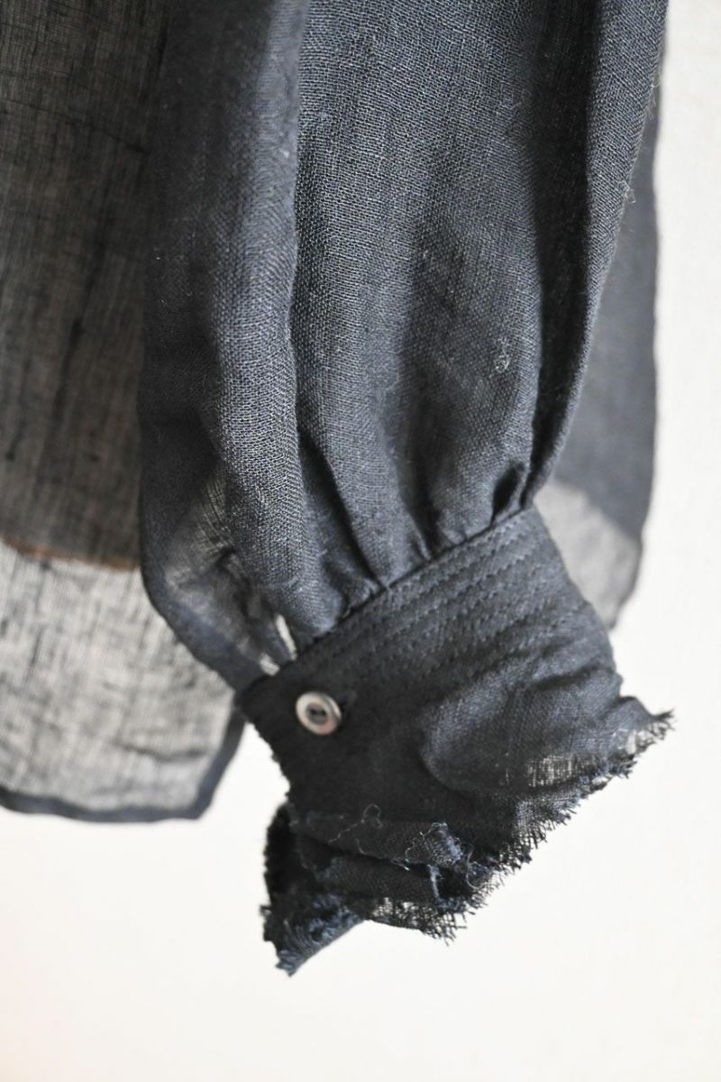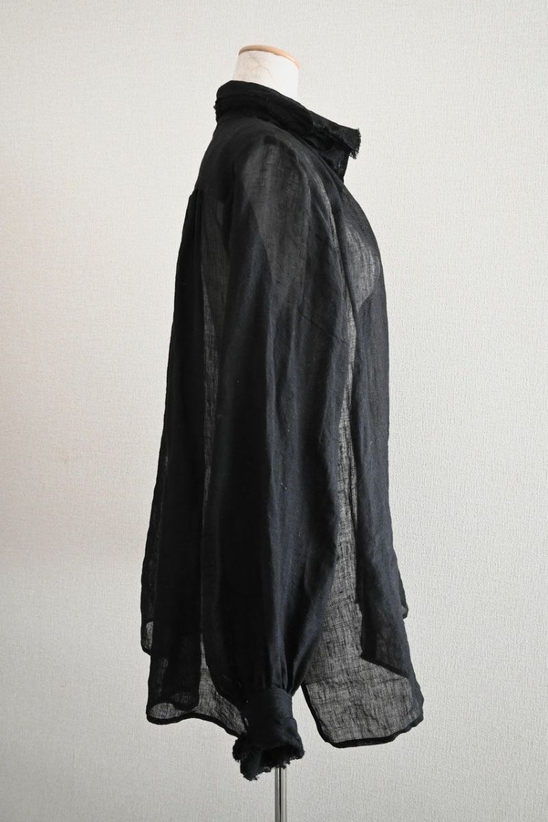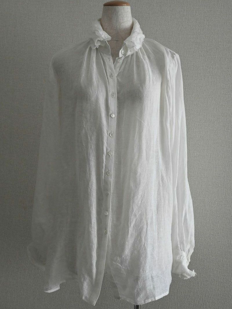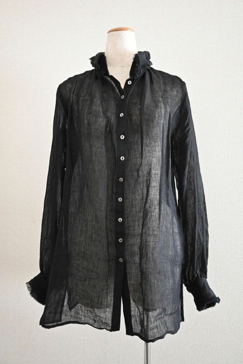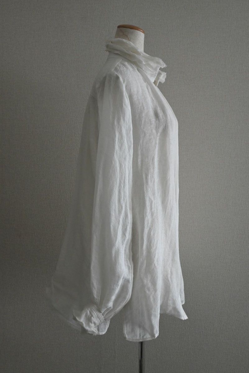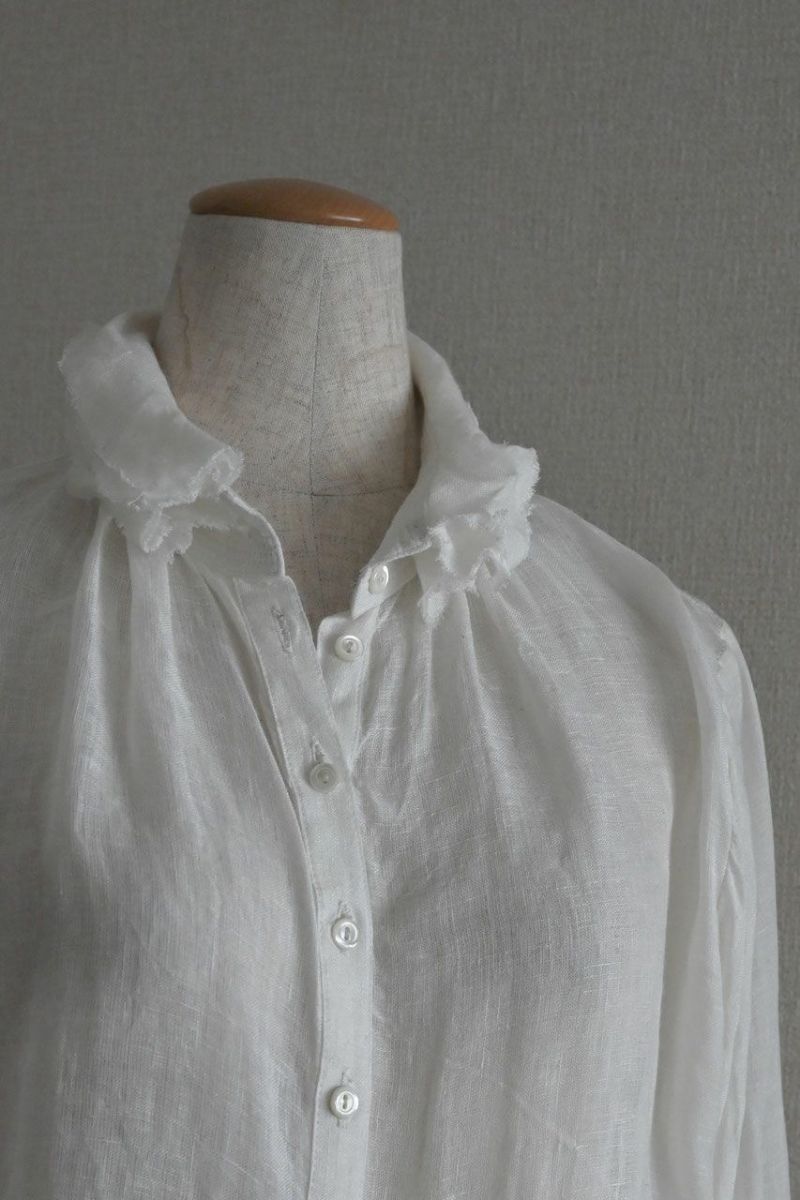 素材は薄く透け感のある爽やかなリネン。襟に6枚、袖口に5枚、切りっぱなしのフリルを重ねました。