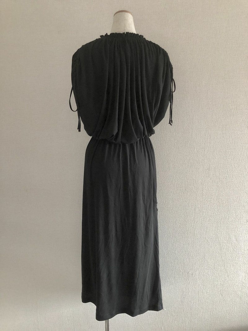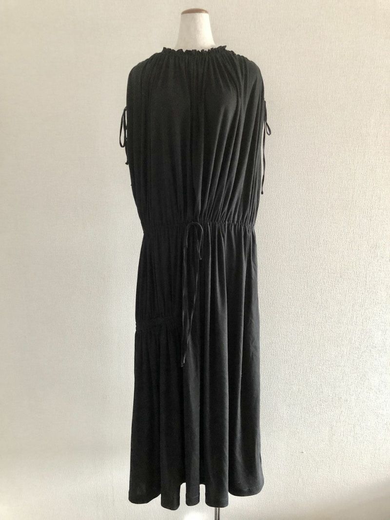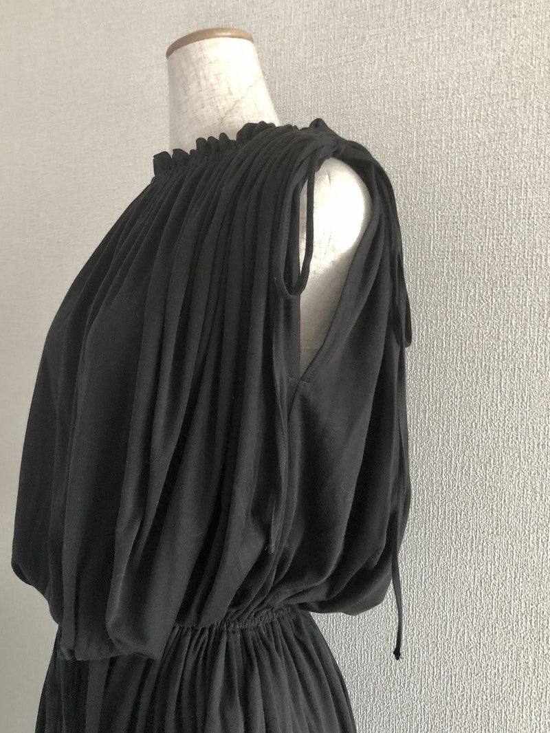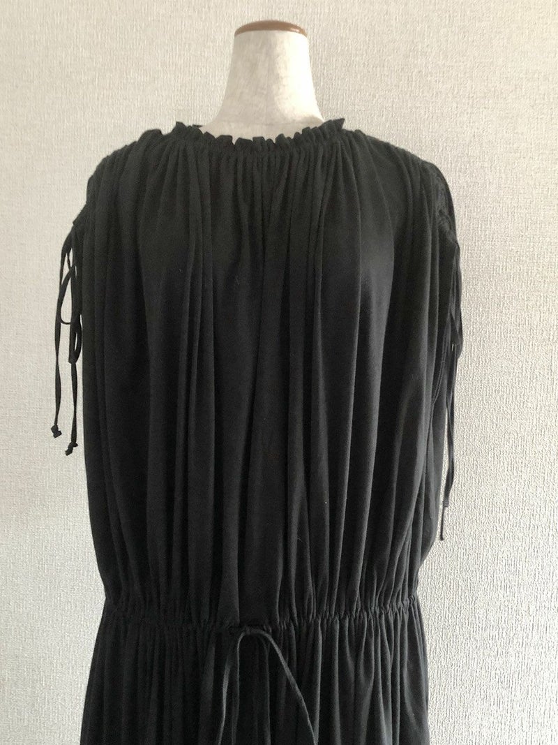 素材/コットン100% 色/ブラック 仕様/袖とウエストに共ひも、スカート部分にポケット2つ