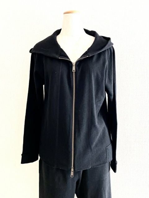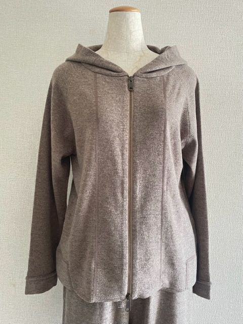 パーカーといえどもエレガントな雰囲気が出る大人の日常着です。