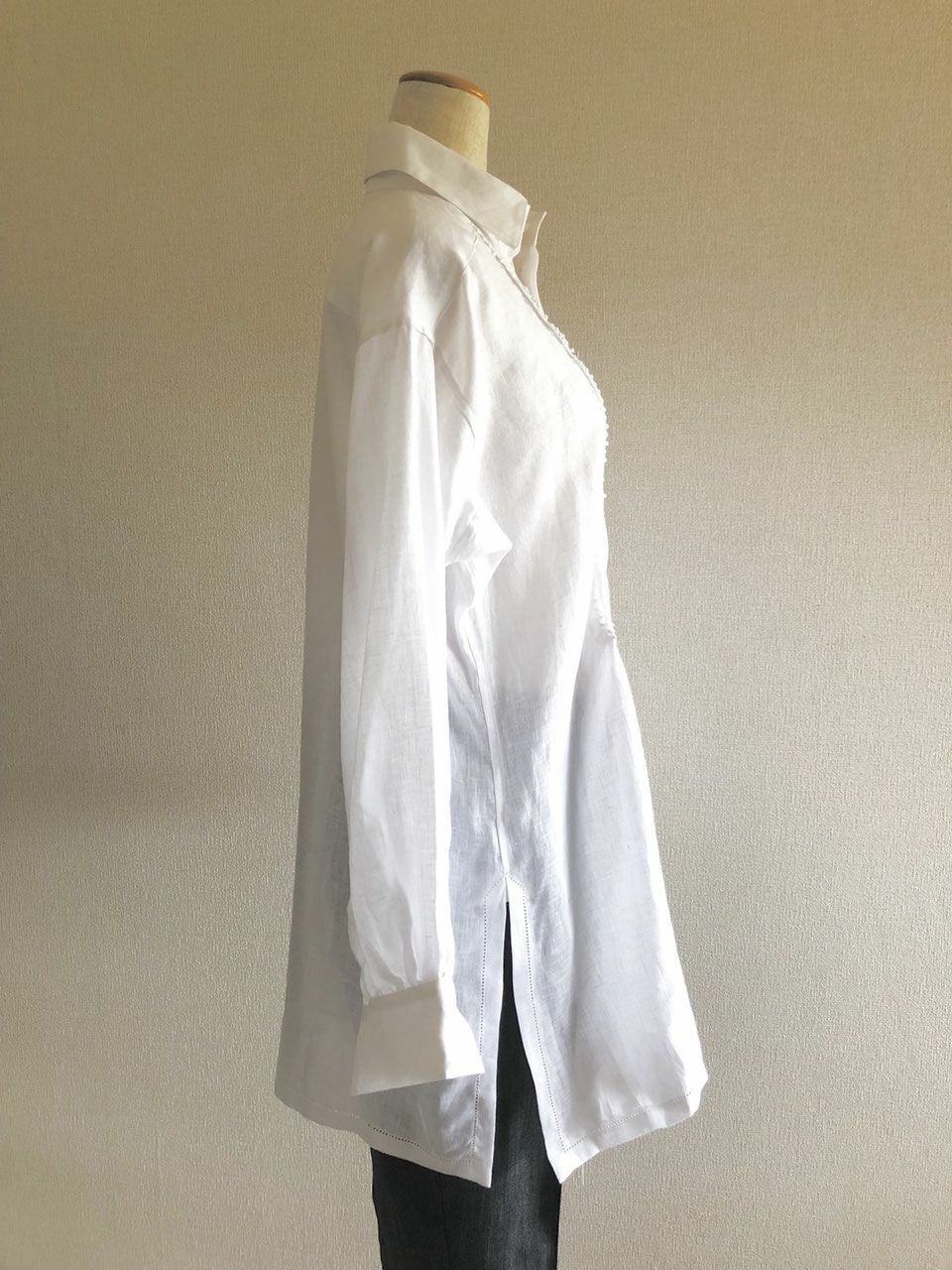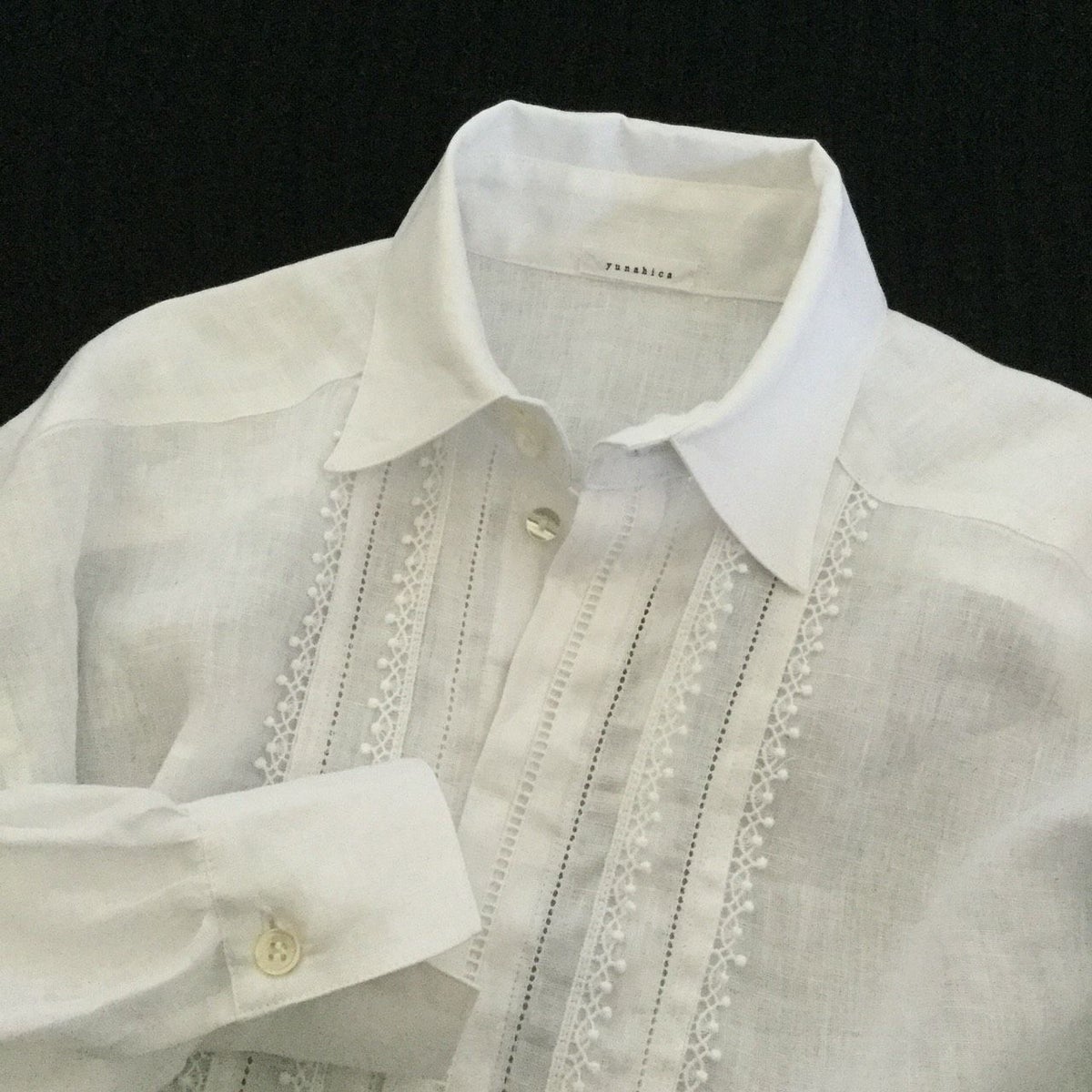 2種類のレースでほのかな甘さ、上質なリネンシャツ