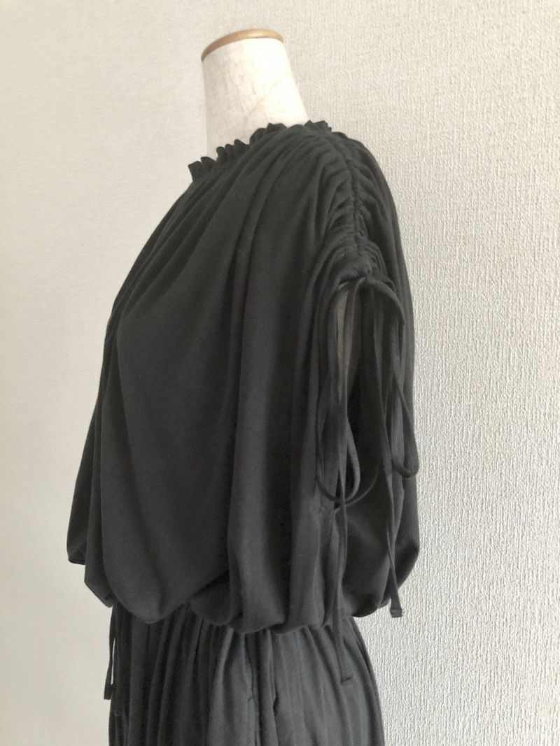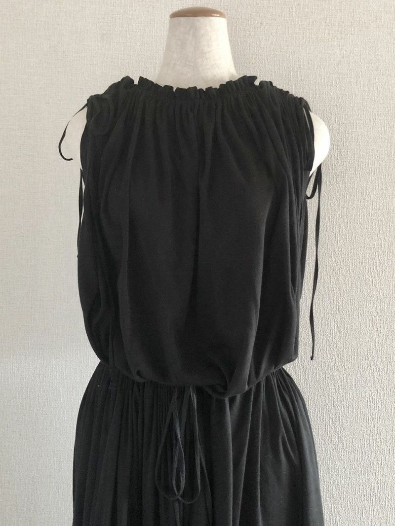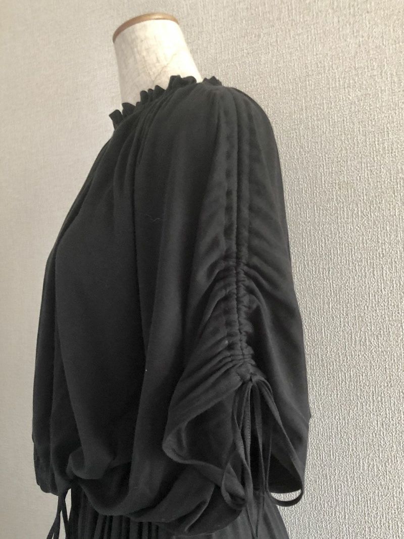 素材/コットン100% 色/ブラック 仕様/袖とウエストに共ひも、スカート部分にポケット2つ